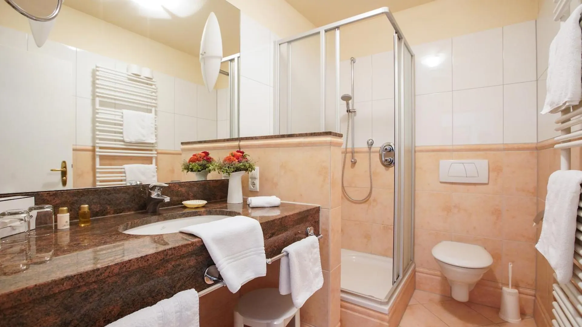 Im 4-Sterne Strandhotel VierJahresZeiten hat jedes Zimmer seinen eigenen Charme. Warm und hell gestaltet, bieten die Räumlichkeiten viel Komfort. Einige Zimmer verfügen über einen separaten Sitzbereich und einige sogar über einen Balkon mit malerischem Meerblick. Nicht zu übersehen sind die Originalgemälde regionaler Künstler, die an den Wänden hängen und für eine gemütliche Atmosphäre sorgen.